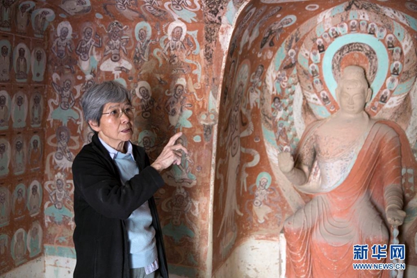 樊錦詩在敦煌莫高窟(2015年9月29日攝)。新華社發(fā)(孫志軍 攝)