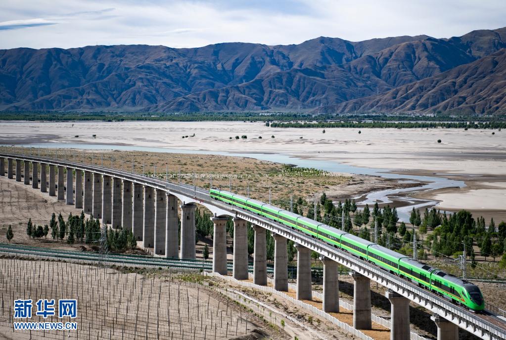 試運行的復(fù)興號列車行駛在雅魯藏布江畔(6月16日攝)。
