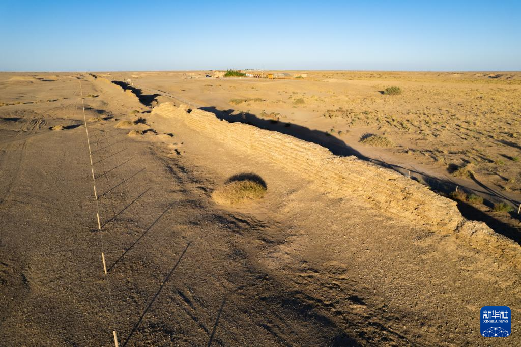 这是张吉全和闻春瑜夫妇负责巡护的一段汉长城遗址(7月16日摄,无人机照片)。