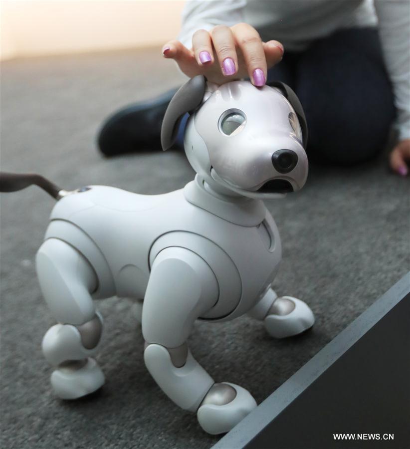 Sony's Aibo robot is shown at Consumer Electronics Show (CES) in Las Vegas, the United States, Jan. 12, 2018. Electronics Show (CES) closed on Jan. 12. (Xinhua/Li Ying)