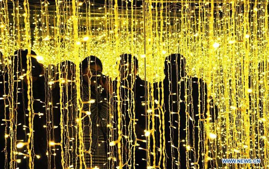 People visit a lantern show in Bozhou, east China's Anhui Province, Feb. 17, 2018, the third day of the Spring Festival holiday. (Xinhua/Zhang Yanlin)