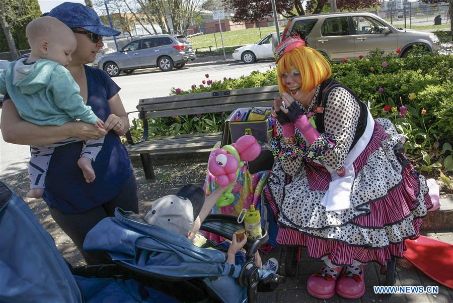 A street performer interacts with her audience during the White Rock Busker Festival in White Rock, Canada, May 5, 2018. (Xinhua/Liang Sen)