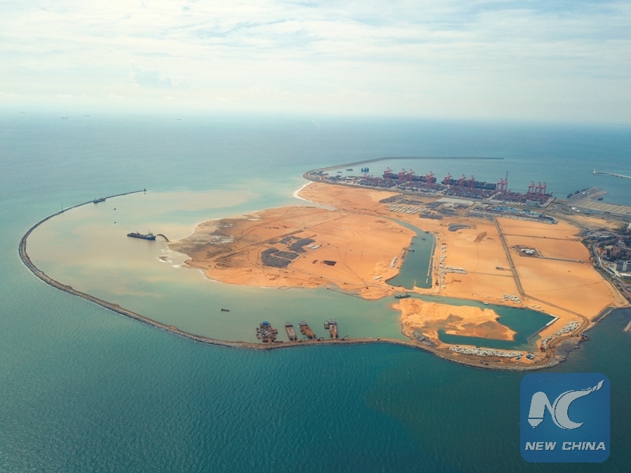 Photo taken on April 19, 2018 shows the construction site of Colombo Port City in Colombo, Sri Lanka. Invested and developed by the China Communications Construction Company Limited (CCCC), Colombo Port City is the project between China and Sri Lanka under the China-proposed Belt and Road Initiative, especially the 21st Century Maritime Silk Road. (Xinhua/CHEC)