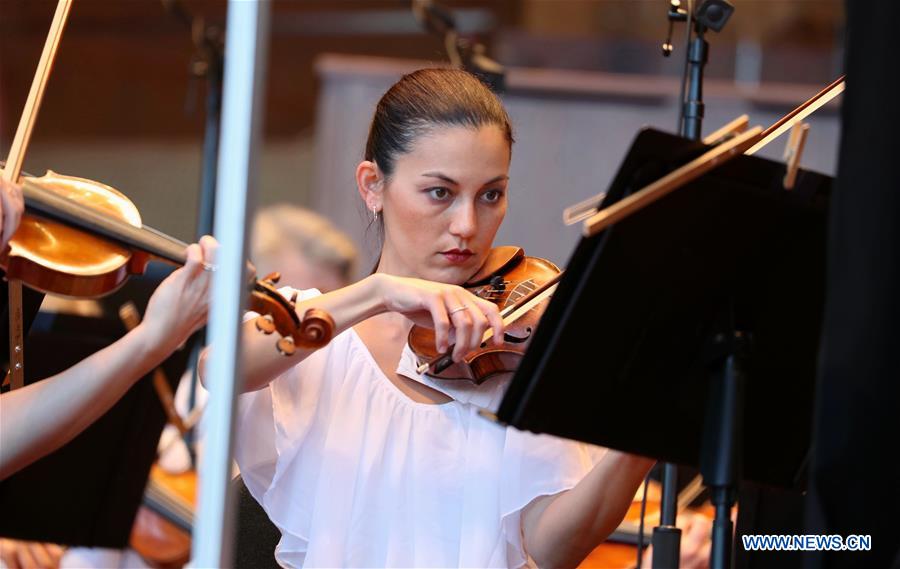 ?A musician of Grant Park Symphony Orchestra performs on the stage at Millennium Park in Chicago, the United States, on June 13, 2018. The Grant Park Music Festival is an annual ten-week classical music concert series held in downtown Chicago.(Xinhua/Wang Ping)