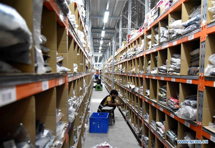 Staff work in a storehouse of JollyChic in Riyadh, capital of Saudi Arabia, on June. 25, 2018. JollyChic is an online retailer operated by a Chinese e-commerce company named Jolly Information Technology Co. LTD based in China's eastern city of Hangzhou. (Xinhua/Wang Bo)