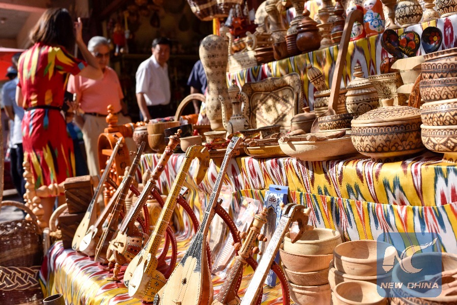 Local handicrafts on display in downtown Kashgar. (Xinhua/Zhao Ge)