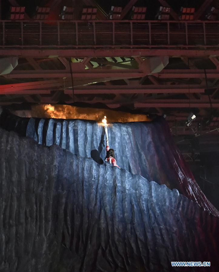 Torchbearer Susi Susanti of Indonesia is seen at the opening ceremony of the 18th Asian Games at Gelora Bung Karno (GBK) Main Stadium in Jakarta, Indonesia, Aug. 18, 2018.(Xinhua/Li He)