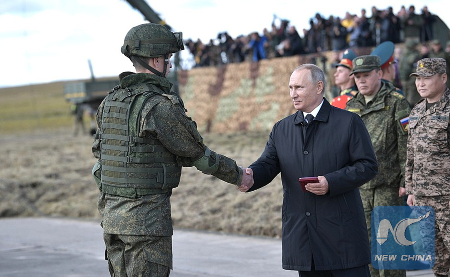 MOSCOW, Sept. 13 (Xinhua) -- The Russian Armed Forces have shown their readiness to successfully withstand potential military threats, Russian President Vladimir Putin said Thursday, after observing a series of drills involving hundreds of thousands of troops.
