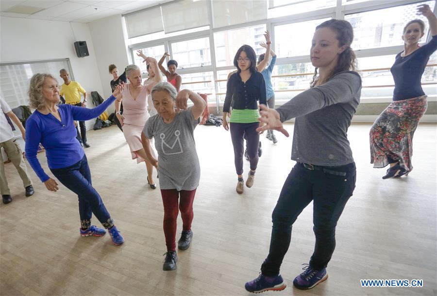 People learn dance from a Flamenco master at a free dance class during the Vancouver International Flamenco Festival in Vancouver, Canada, Sept. 22, 2018. The 2018 Vancouver International Flamenco Festival runs from Sept. 21 to 29, bringing local and international flamenco artists together, providing performances, lessons, open studios, master classes for the public to learn and enjoy Flamenco culture. (Xinhua/Liang Sen)