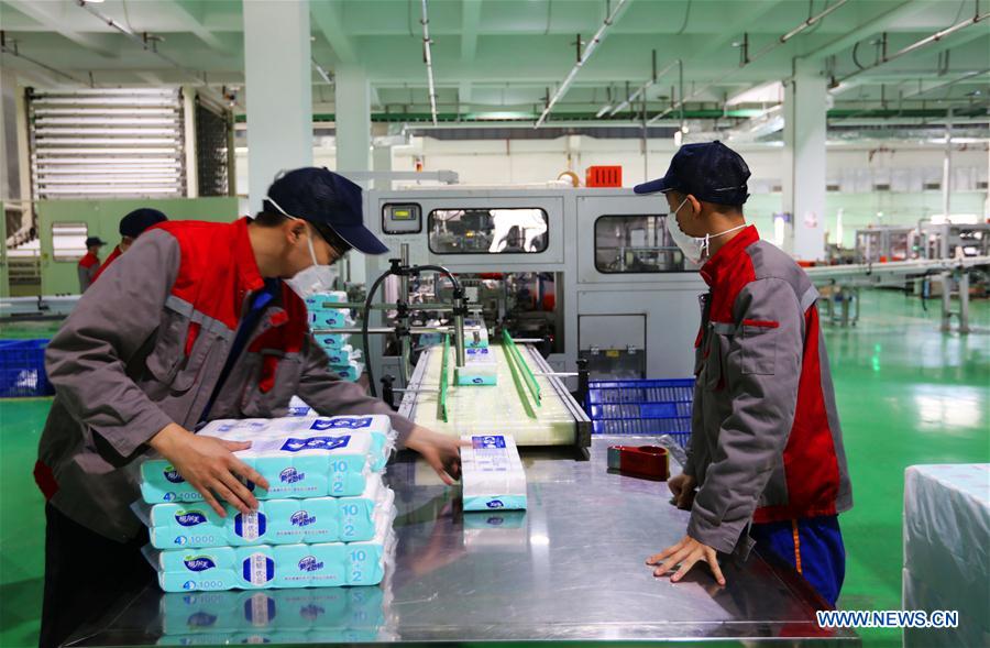 Workers use bamboo materials to make tissues at a bamboo paper making factory in Chishui, southwest China's Guizhou Province, Nov. 1, 2018. With a total of 1.33 million mu (0.09 million hectares) of bamboo forests, Chishui has promoted bamboo-related industry as an income booster for the locals. (Xinhua/Wang Changyu)