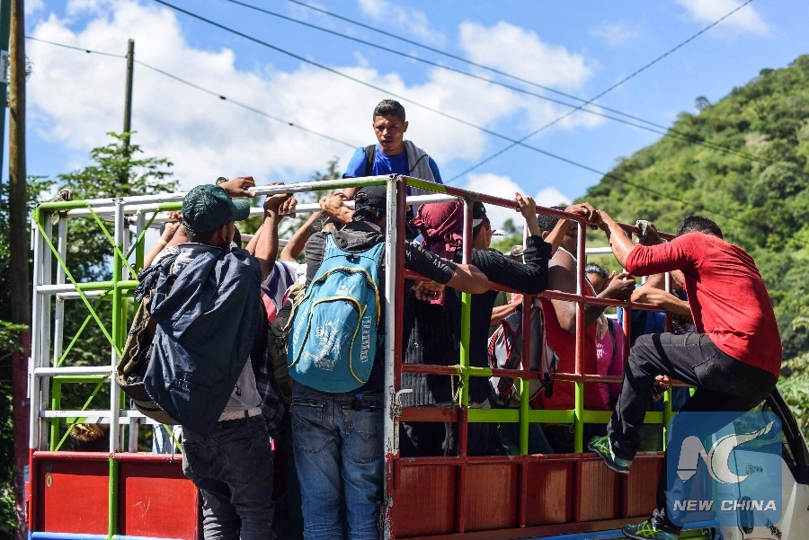 File Photo: Honduran migrants board a truck as they take part in a new caravan heading to the U.S., in Quezaltepeque, Chiquimula, Guatemala on Oct. 22, 2018. (Xinhua/AFP)