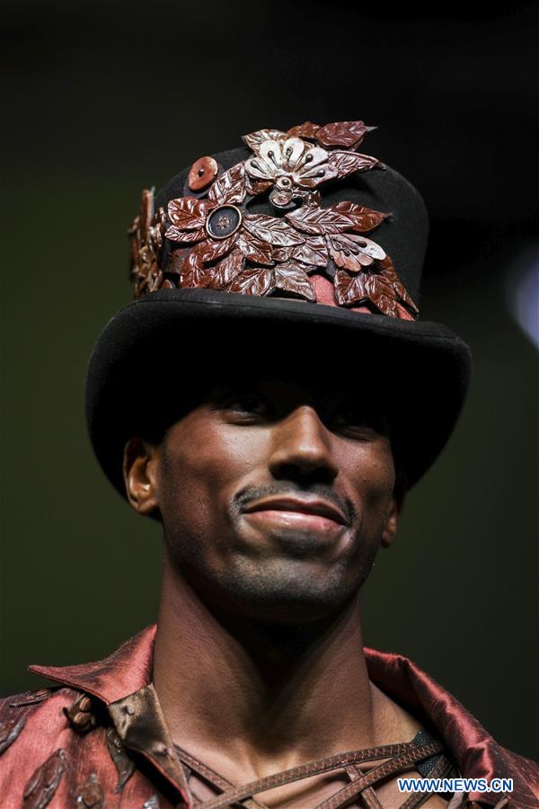 A model wears a chocolate headdress during the opening show of the 6th Brussels Chocolate Salon in Brussels, Belgium, Feb. 21, 2019. The 6th Brussels Chocolate Salon (Salon du Chocolat Brussels) kicked off here on Thursday. In the following three days, 130 chocolatiers, pastry chefs, confectioners, designers and cocoa experts of international reputation in attendance will share and exhibit chocolate in all its delectable forms. (Xinhua/Zheng Huansong)