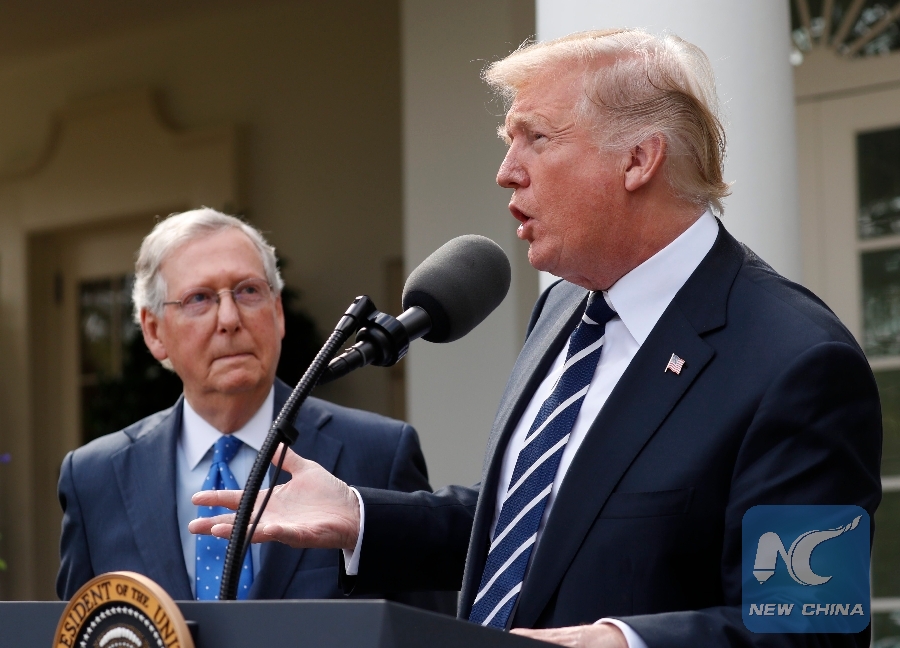 File Photo: U.S. President Donald Trump speaks to the media with U.S. Senate Majority Leader Mitch McConnell at his side in the Rose Garden of the White House in Washington, U.S., Oct. 16, 2017. (Xinhua/REUTERS)
