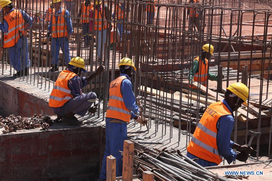 Workers from China and Zimbabwe work on the construction site of Zimbabwe's new Parliament building in Mount Hampden, Zimbabwe, on April 8, 2019. Infrastructural development has become the cornerstone of China-Zimbabwe cooperation with the Asian giant investing billions of U.S. dollars in infrastructural projects in various sectors of the Zimbabwean economy. (Xinhua/Chen Yaqin)