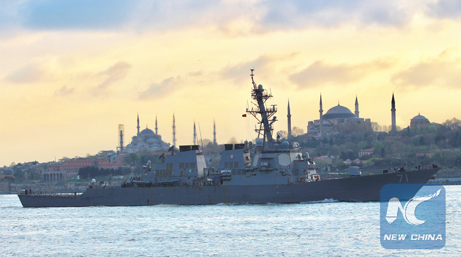 MOSCOW, April 15 (Xinhua) -- Two Russian Navy vessels tracked the U.S. guided-missile destroyer Ross which entered the Black Sea on Sunday, the Russian Defense Ministry said in a statement Monday.