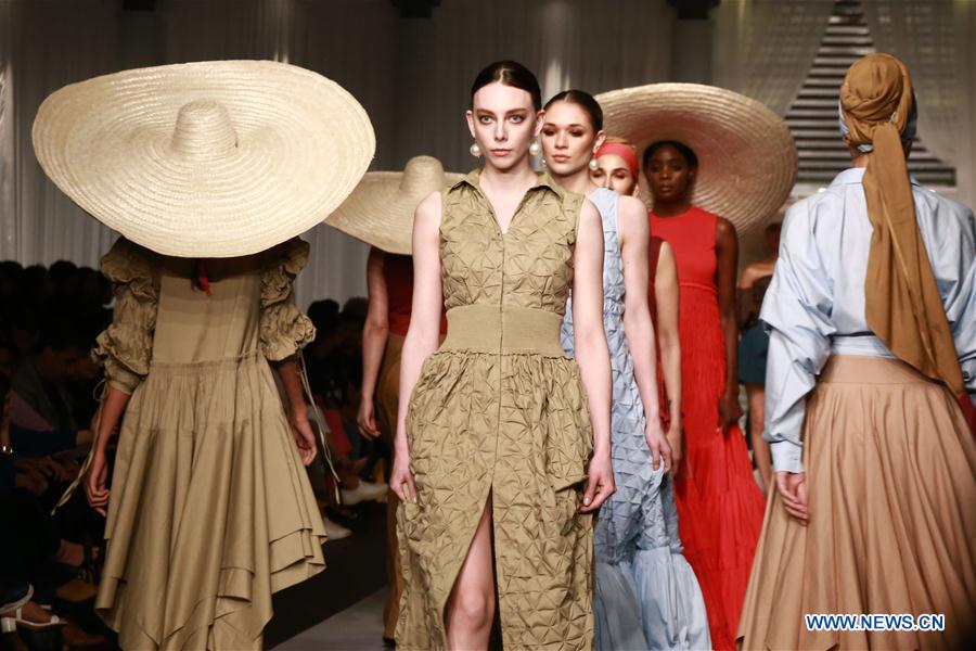 Models present creations by designer Zaheer Abbas on the first day of the 'Hum Showcase' Fashion Week in southern Pakistani port city of Karachi on April 18, 2019. (Xinhua/Stringer)