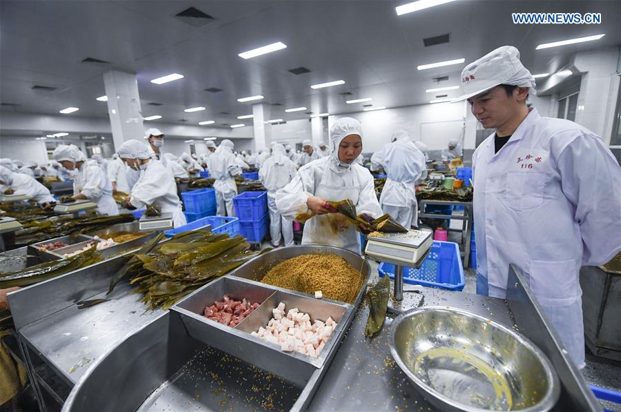 Xu Jie (R) inspects a workshop of Sanzhenzhai in Tongxiang City of east China's Zhejiang Province, April 18, 2019. Xu Jie is now known as the vice president of Sanzhenzhai, a time-honored food brand in east China's Zhejiang Province. However, he used to be a ballet performer after graduated from the dance department. In 2012, at his farther's request, Xu stopped his ballet career and began to take over his family business of Sanzhenzhai. Subsequently, managing this company occupied most of his life. After several years of running-in, he became more and more skilled in business management and could take time to regain his favorite ballet. In 2019, Xu and his friends jointly opened a ballet studio in Tongxiang to teach people ballet. Meanwhile, Xu opened a ballet class at a local primary school. Nowadays Xu is not only an entrepreneur on working days but also a ballet teacher on his spare time. (Xinhua/Xu Yu)
