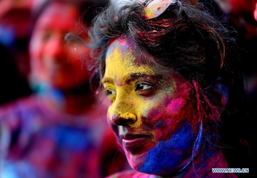 Women with their faces smeared with colored powder take part in a celebration of the Holi Festival in Yangon, Myanmar, March 20, 2019. China will hold the Conference on Dialogue of Asian Civilizations starting from May 15. Under the theme of "exchanges and mutual learning among Asian civilizations and a community with a shared future," the conference includes an opening ceremony and sub-forums. (Xinhua/U Aung)