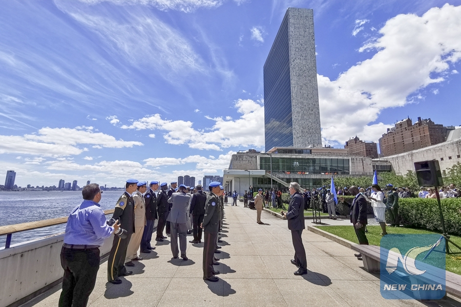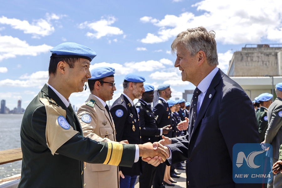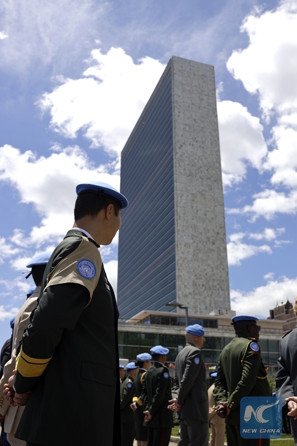 Photo shows the United Nations Peacekeeping Medal award ceremony at the UN headquarters in New York, May 24, 2019. (Xinhua/Li Muzi)