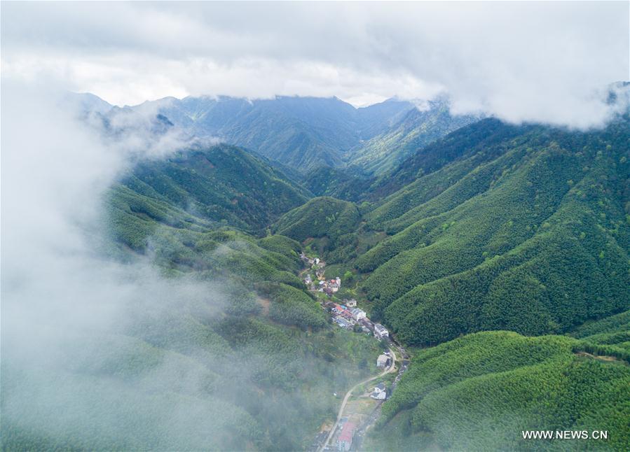 Aerial photo taken on April 10, 2019 shows Tongmu Village on Wuyi Mountain, southeast China's Fujian Province. Located on the southeastern coast of China, Fujian Province is lying between mountains and the sea. Acting on the understanding that lucid waters and lush mountains are invaluable assets, Fujian in recent years has achieved great successes in terms of ecological development. The province has ranked China's No. 1 for 40 years with a forest coverage rate passing 67 percent. Besides high water quality, local residents also enjoy good air quality on over 95 percent of days in main cities of Fujian. Benefiting from its natural environment, Fujian keeps pioneering sustainable economy, mechanism invigoration, sound livability and good life. On June 13-15, the Beijing International Horticultural Exhibition exposes visitors to Fujian's sound livability and natural beauties with a Fujian Day theme event. (Xinhua/Song Weiwei)