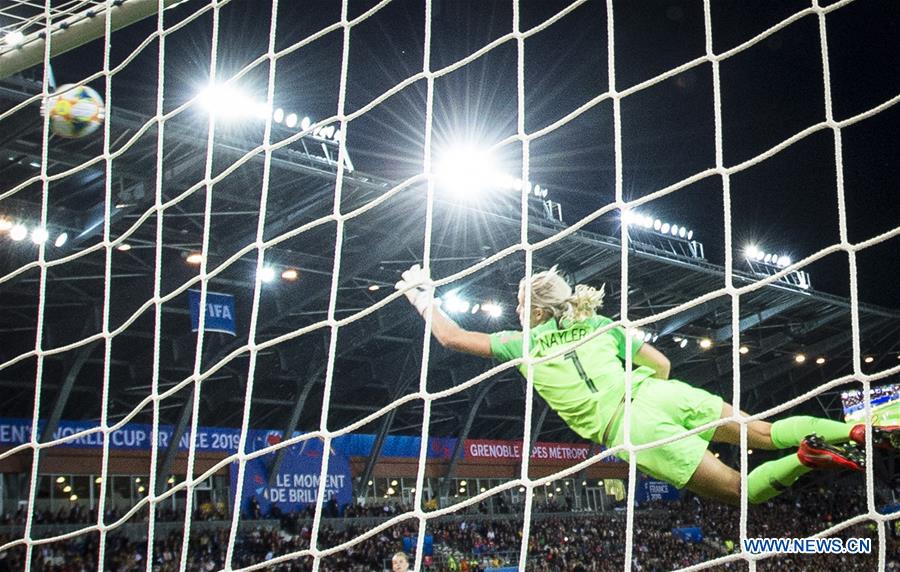 Goalkeeper Erin Nayler of New Zealand competes during the group E match between Canada and New Zealand at the 2019 FIFA Women's World Cup in Grenoble, France on June 15, 2019. Canada won 2-0. (Xinhua/Xiao Yijiu)