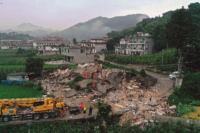 Rescuers work at Putao Village of Shuanghe Town in Changning County of Yibin City, southwest China's Sichuan Province, June 18, 2019. (Xinhua)