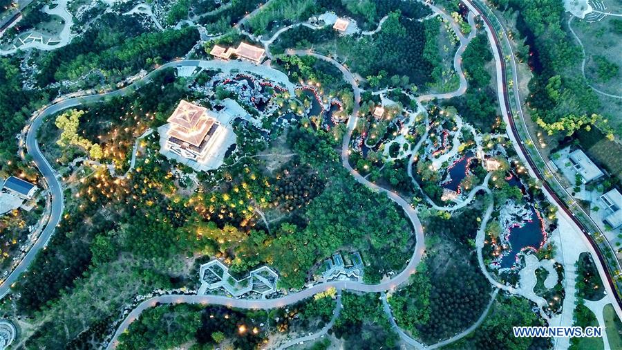 Aerial photo taken on May 29, 2019 shows the scenery of Nanhu Lake scenic area in Tangshan, north China's Hebei Province. (Xinhua/Mu Yu)