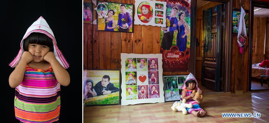 Combo photo taken on June 11, 2019 shows the portrait of Bai Yuanmei, a 3-year-old girl of Jino ethnic group (L, photo taken by Hu Chao), and Bai playing at home in Luote Village of Jino Ethnic Township, Jinghong City, southwest China's Yunnan Province (R, photo taken by Qin Qing). Bai's biggest wish is to have her parents accompanying her more. Zhiguo minorities are special members of China's 56 ethnic groups. The term Zhiguo refers to minority groups who, before modernization, had lived in relative isolation and skipped the transition period associated with feudal monarchy. Yunnan is a major concentrated area of Zhiguo minorities, including the ethnic minorities of Jino, Deang, Dulong and six other minority groups. Early in April, the local government announced that ethnic groups of Jino, Dulong and Deang had been officially lifted out of poverty. The rest other Zhiguo minorities are expected to shake off poverty in this year and next. (Xinhua)