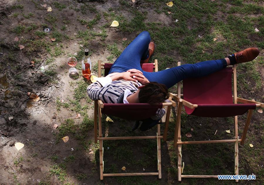 A man rests during the Paris Plage at the banks of River Seine, in Paris, France, July 17, 2019. The annual Paris Plage (Paris beach) event is held from July 6 to Sept. 1, 2019. (Xinhua/Gao Jing)