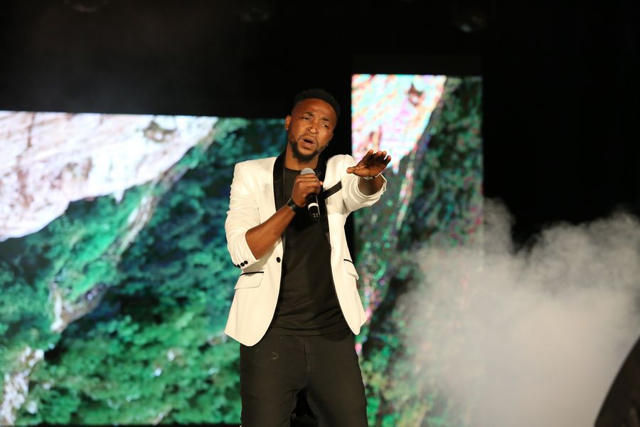 A competitor performs during the grand finale of the 2019 Dreamstar Zimbabwe talent search competition in Harare, Zimbabwe, Aug. 31, 2019. (Photo by Chen Yaqin/Xinhua)