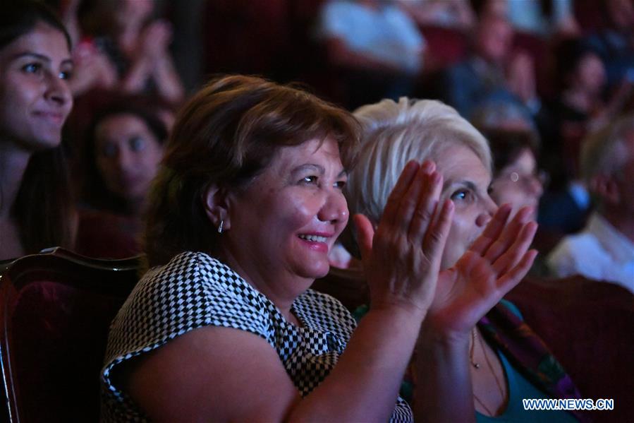 A local woman applauds for the performance of artists during the opening ceremony of the Chinese Culture Day in Yerevan, capital of Armenia, Sept. 7, 2019. (Xinhua/Li Yong)