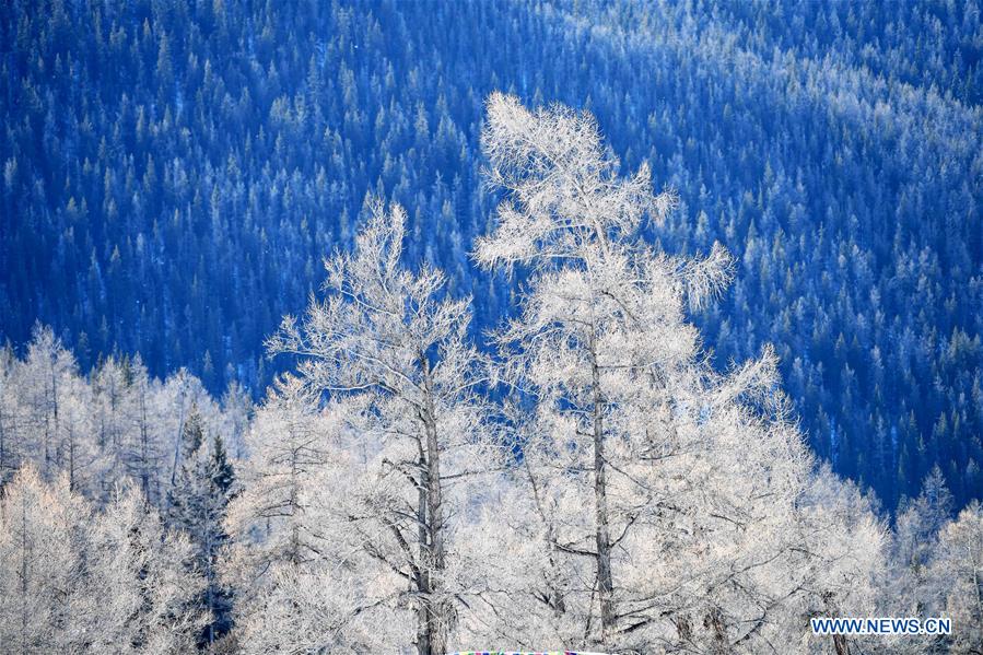 Photo taken on Jan. 19, 2019 shows the winter scenery of Keketuohai scenic spot in northwest China's Xinjiang Uygur Autonomous Region. Located in northwest China, Xinjiang Uygur Autonomous Region boasts three mountains, namely Tianshan, Kunlun and Altay, and two basins, Junggar and Tarim. Its various landscapes and natural beauties attract tourists from home and abroad. In recent years, Xinjiang has carried out a number of projects, including natural forest protection, returning farmland to forest or grassland, prevention and control of desertification and wildlife protection, to improve local ecological environment. From Sept. 16 to 18, the "Xinjiang Day" event is held at the ongoing Beijing International Horticultural Exhibition to welcome visitors worldwide. (Xinhua/Sadat)