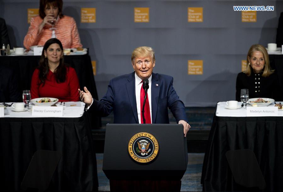U.S. President Donald Trump delivers a speech at the Economic Club of New York in New York Nov. 12, 2019. (Xinhua/Wang Ying)