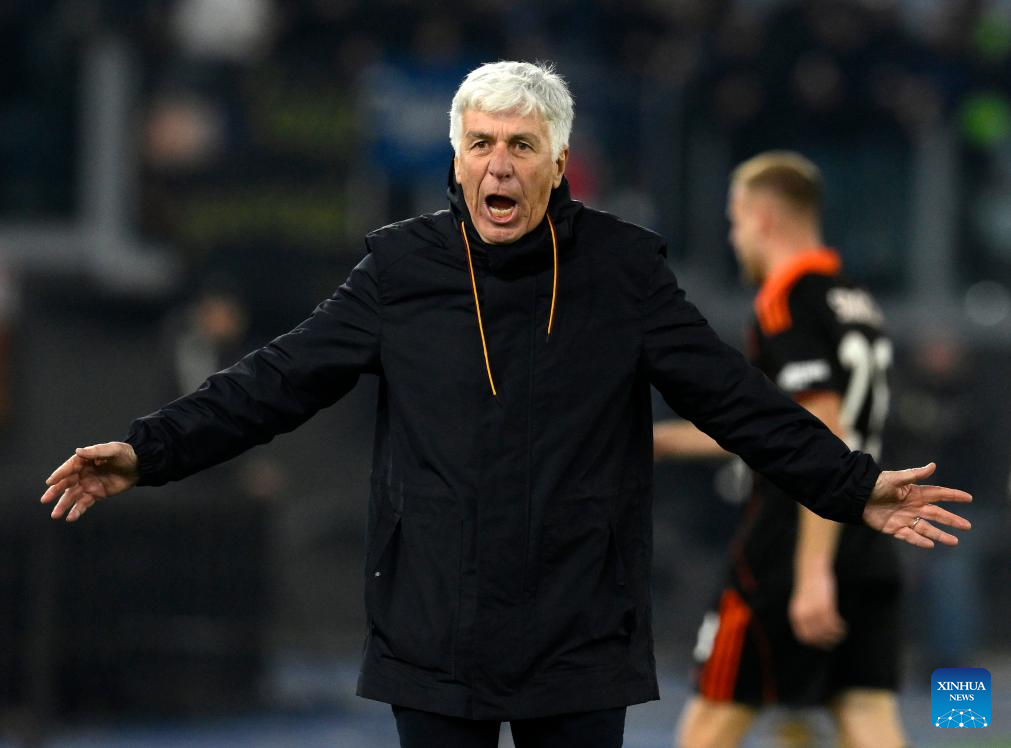 Roma's head coach Giampiero Gasperini gestures during a Serie A football match between Roma and Como in Rome, Italy, Dec.15, 2025. (Photo by Alberto Lingria/Xinhua)