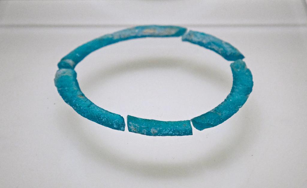 这是展出的淄博市博物馆藏战国琉璃环(6月10日摄)。