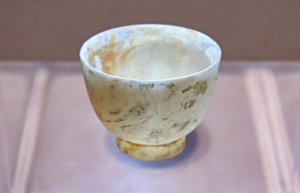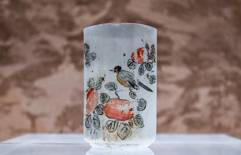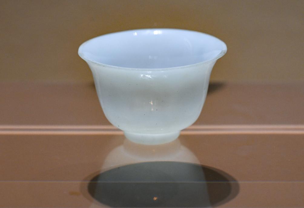 这是展出的淄博陶瓷琉璃博物馆藏清代仿白玉琉璃杯(6月10日摄)。