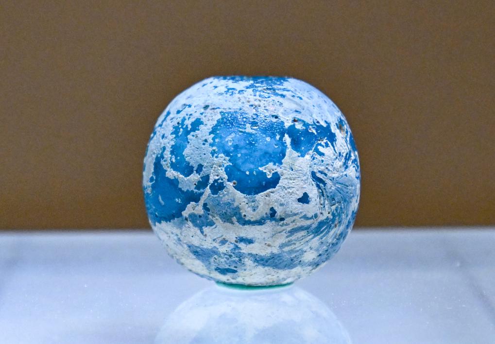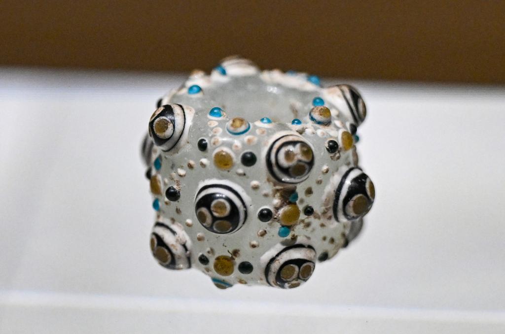 这是展出的淄博市博物馆藏战国琉璃珠(6月10日摄)。