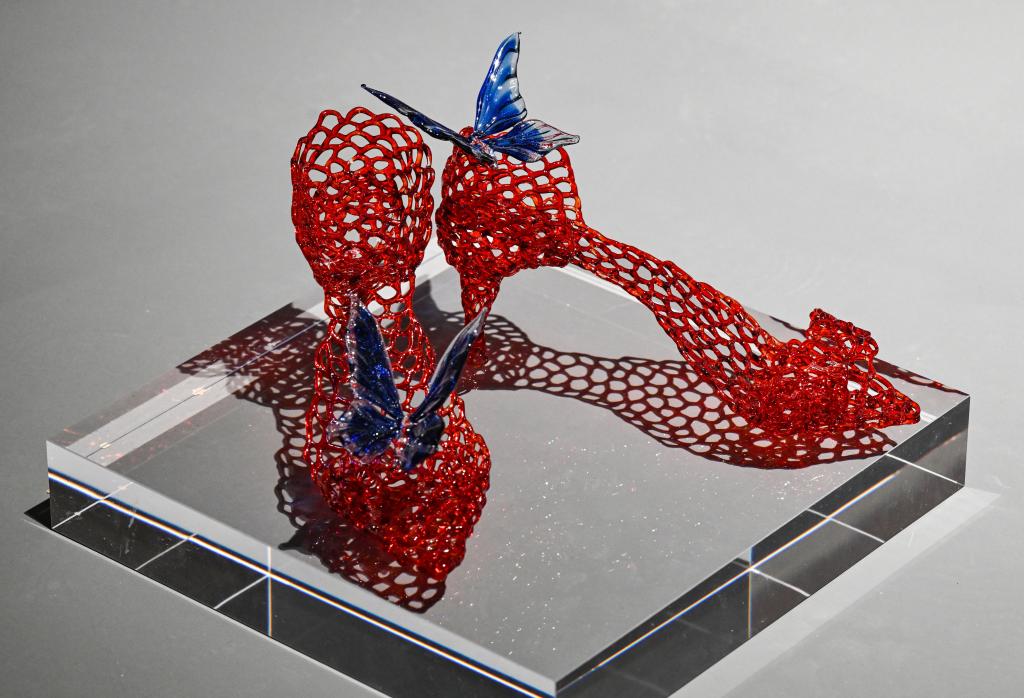 这是一件名为“童话之履”的参展琉璃作品(6月10日摄)。