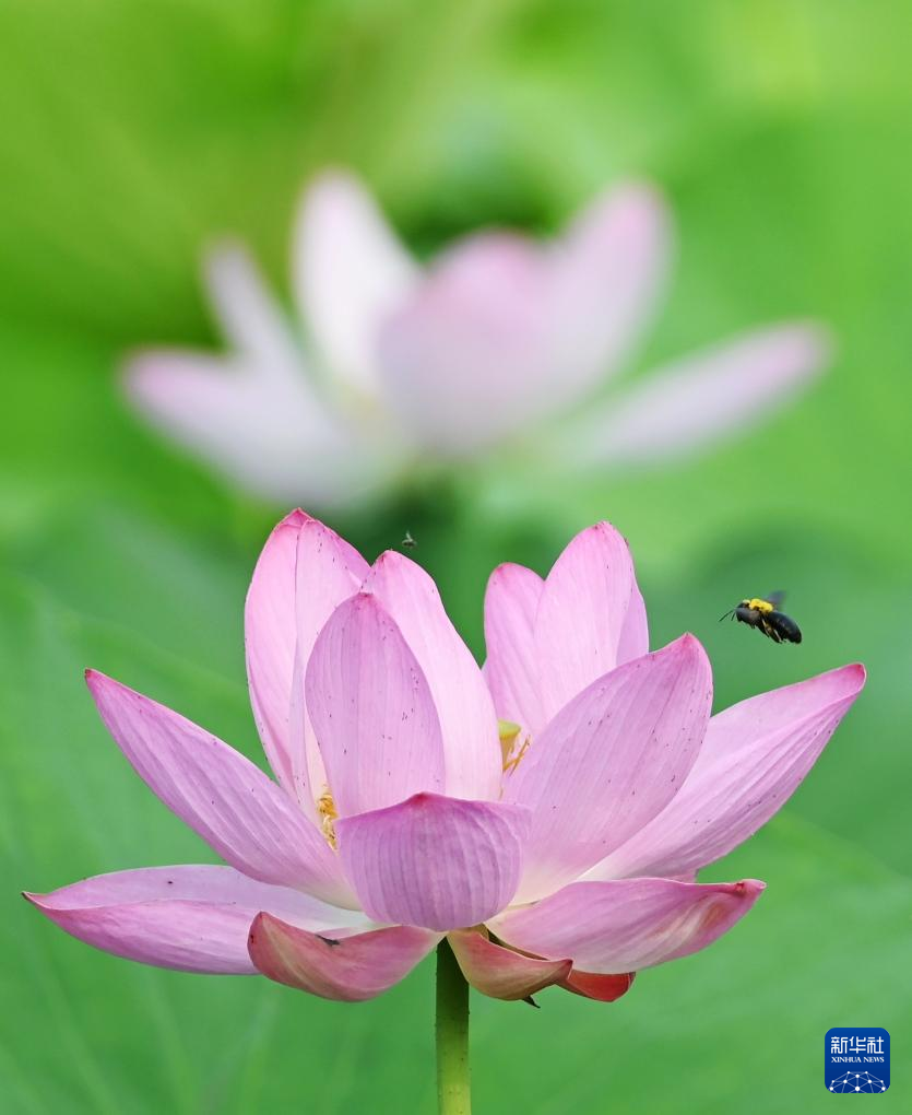 这是6月14日在广西贺州市平桂区鹅塘镇栗木村拍摄的荷花。