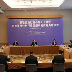 2月28日至3月1日,中央有關部門在深圳市召開座談會,廣泛、充分聽取香港社會各界代表人士對完善“愛國者治港”有關制度的意見。全國兩會期間,相關部門又以多種方式,逐一聽取了港區(qū)全國人大代表、政協(xié)委員的意見。