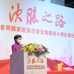 林鄭月娥說,本次展覽展示了不少香港各界參與國家脫貧攻堅(jiān)戰(zhàn)的故事,記錄了香港同胞如何為國家獻(xiàn)出力量和經(jīng)驗(yàn),相信香港市民參觀后都會(huì)對(duì)國家的成就和香港的貢獻(xiàn)感到自豪。