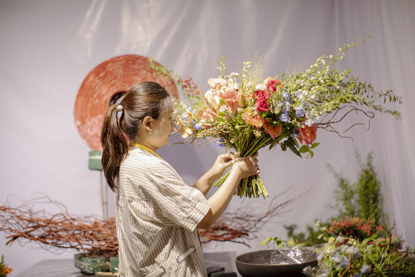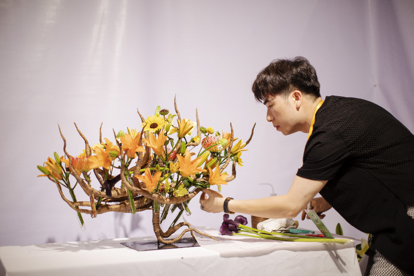 “輕攏慢捻抹復(fù)挑,插花也如琵琶語(yǔ)?!庇浾咴诂F(xiàn)場(chǎng)看到,選手們沉浸在插花藝術(shù)創(chuàng)作中,鮮花、枝葉在他們的手中經(jīng)過(guò)一番規(guī)整修剪,又如繪畫(huà)般慎重落下一抹畫(huà)筆,嬌艷綻放的鮮花在新的布局下,逐漸呈現(xiàn)出定格的自然之美、線條之美與意境之美,花藝設(shè)計(jì)本身的創(chuàng)作過(guò)程,就是一場(chǎng)賞心悅目的藝術(shù)呈現(xiàn),人和花交流的過(guò)程,也會(huì)讓人們更加能夠體會(huì)到生命的真實(shí)與絢爛。