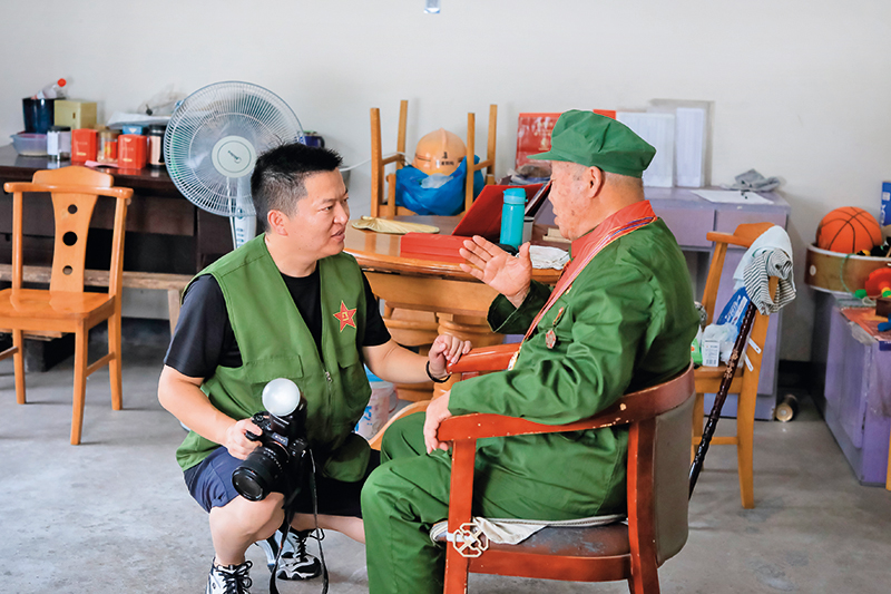 郑瑜上门为抗美援朝老兵拍照(2023 年 7 月摄) 受访者供图