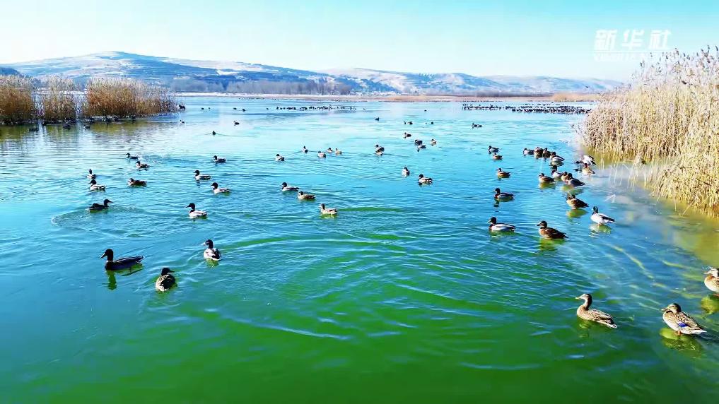 寧夏彭陽:店洼水庫數(shù)以千計野鴨等候鳥“集體越冬”