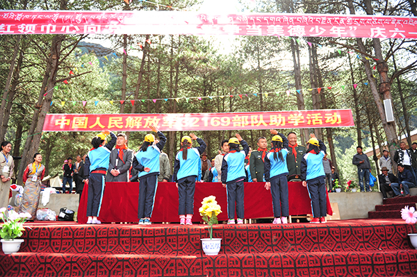????邊防官兵與貧困學生開展結(jié)對助學活動。張迅 攝
