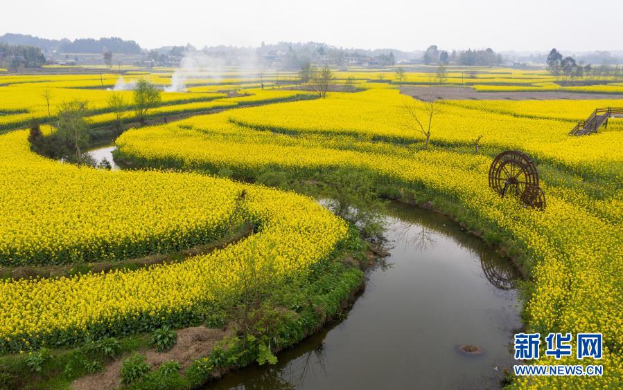 安州區(qū)樂興鎮(zhèn)蓮花村的油菜花海(3月14日攝,無人機(jī)照片)。新華社記者 江宏景 攝