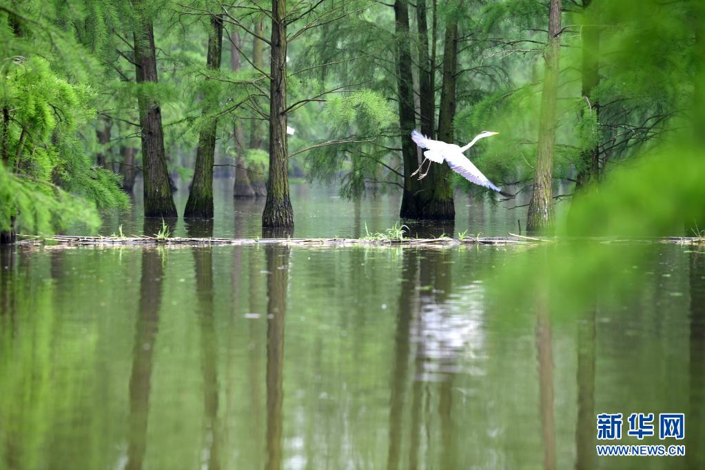 位于安徽省滁州市來安縣雷官鎮(zhèn)的池杉湖國家濕地公園經(jīng)過多年的生態(tài)修復(fù),形成分布數(shù)萬株池杉樹、具有獨(dú)特觀賞價(jià)值的“水上森林”濕地景觀,成為眾多鳥類生活、棲息的“天堂”。