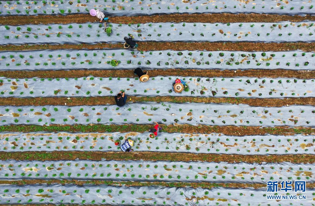 5月13日,村民在玉屏侗族自治縣田坪鎮(zhèn)慶寨村辣椒種植基地勞作(無(wú)人機(jī)照片)。