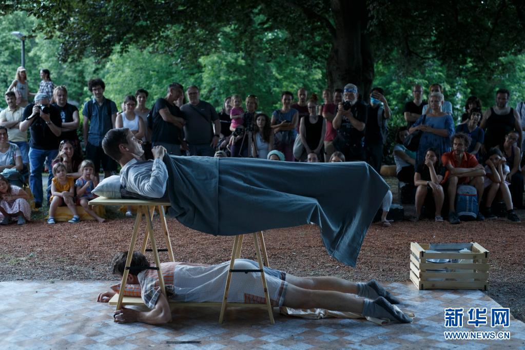 6月30日傍晚,藝術(shù)工作者在斯洛文尼亞首都盧布爾雅那進行街頭戲劇節(jié)表演。