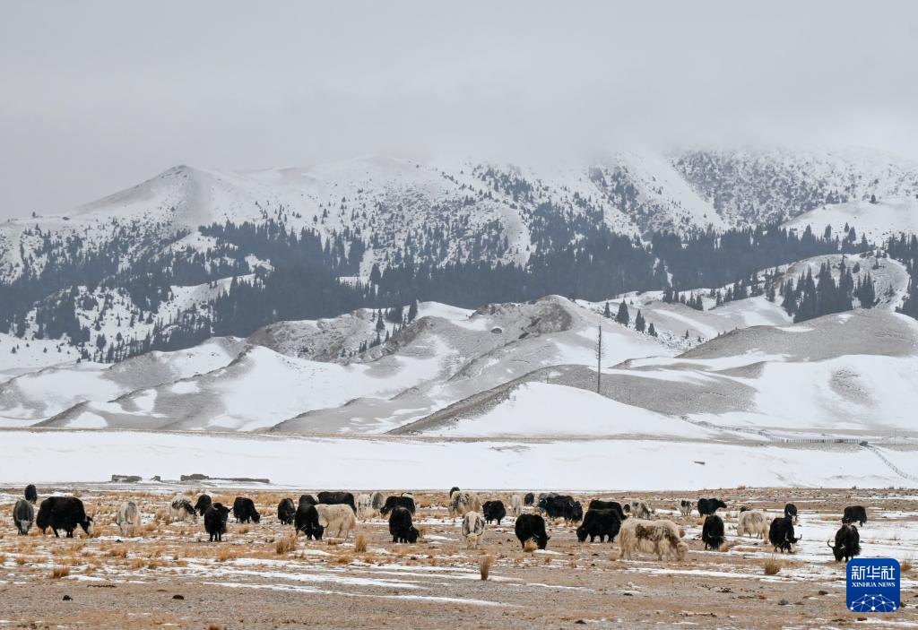 12月16日拍摄的赛里木湖和雪山(无人机照片)。